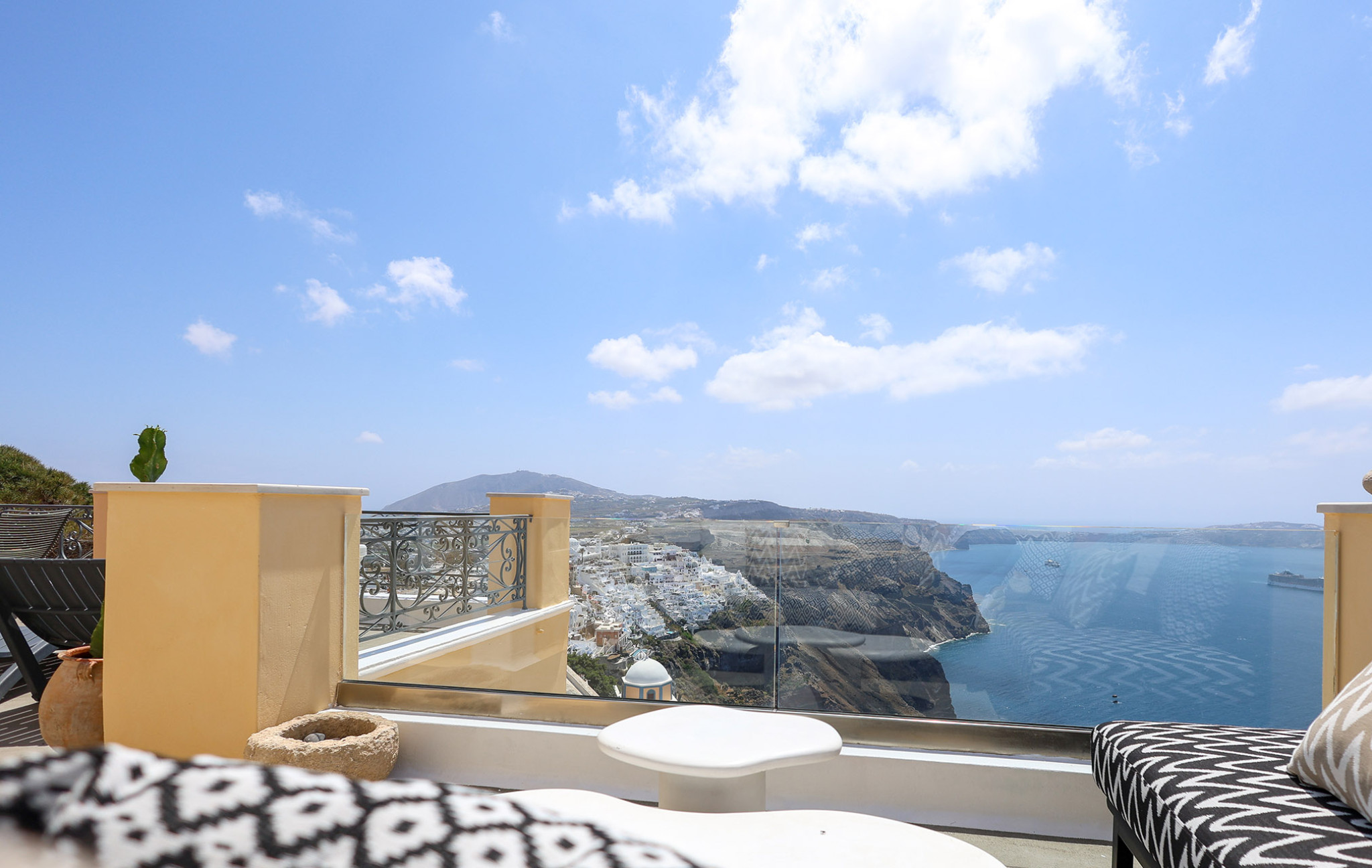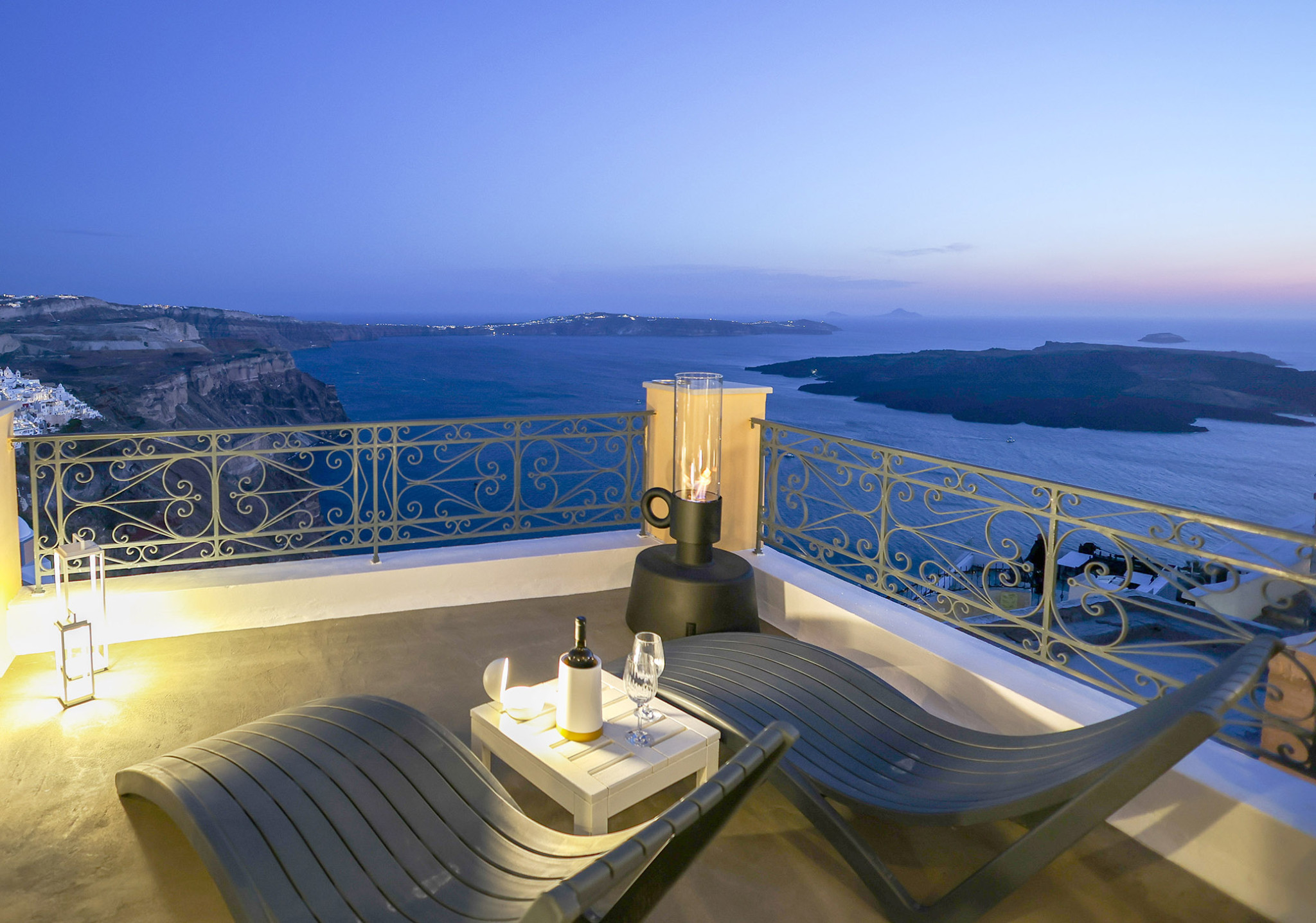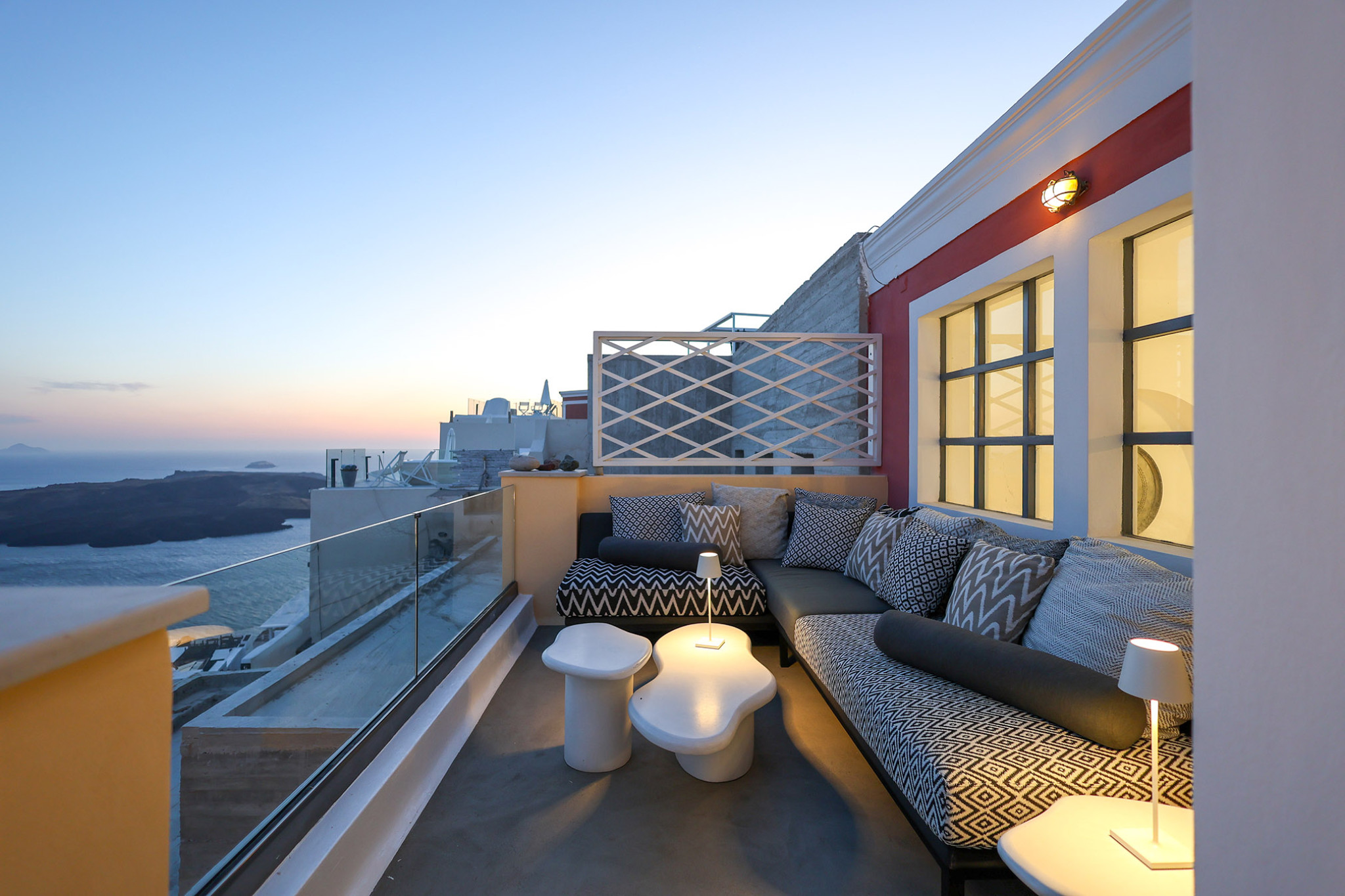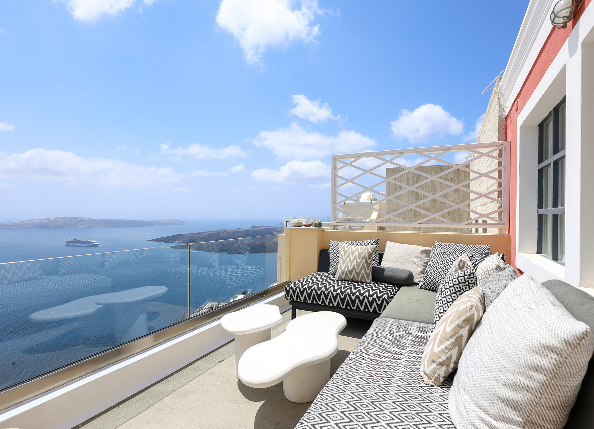 D’ Aniel Mansion envelops you with panoramic breathtaking views of Santorini’s most iconic places. Perched above the Caldera, the mansion offers stunning vistas of the volcano, the old port, and the Aegean Sea. Whether relaxing in the indoor lounge or the outdoor spacious veranda, guests are constantly surrounded by light, sea, sky, and history.