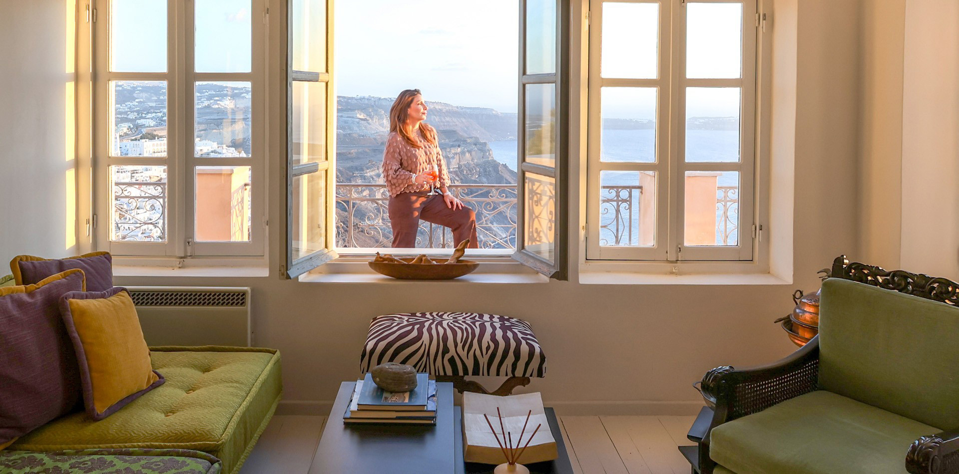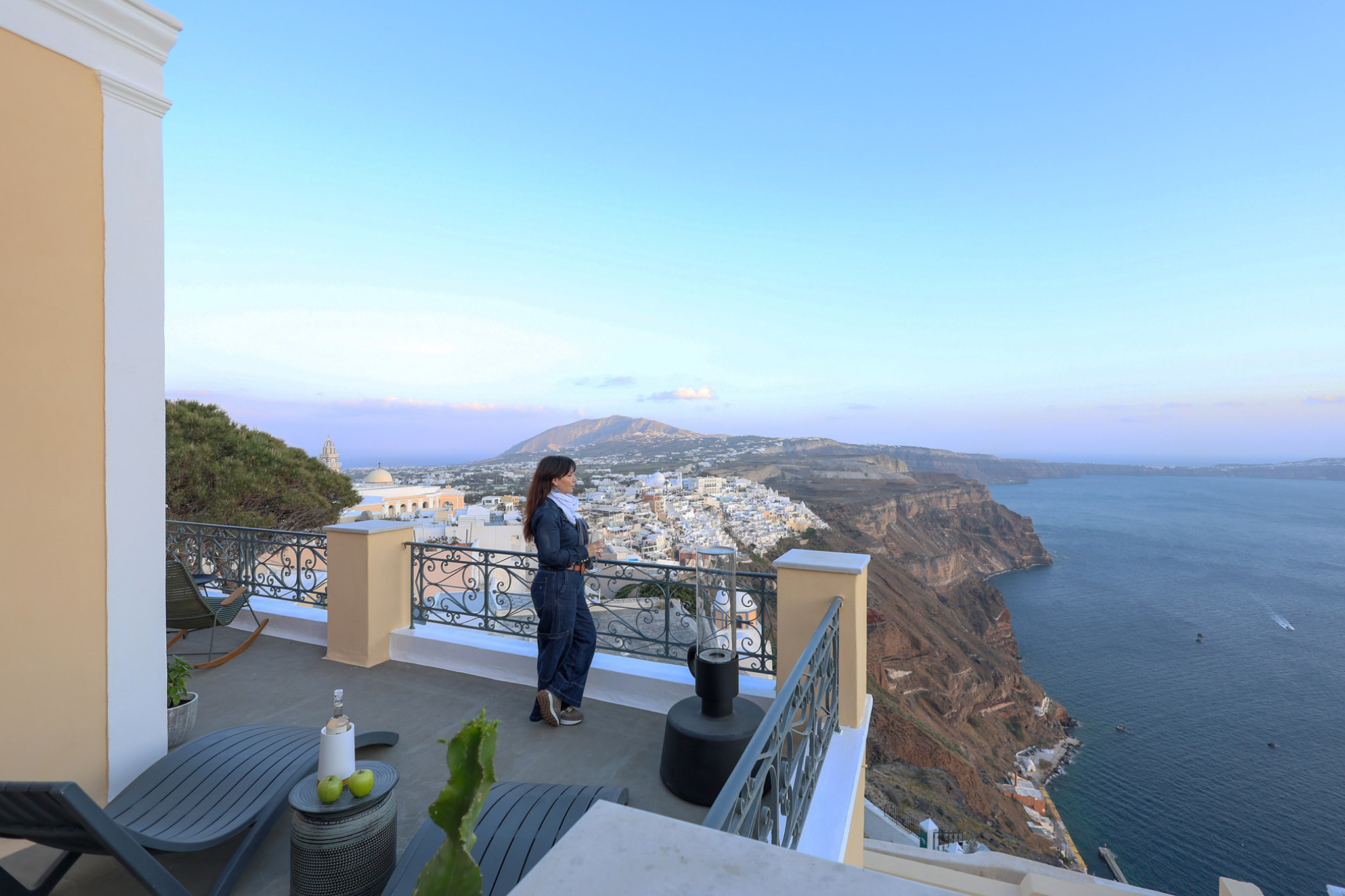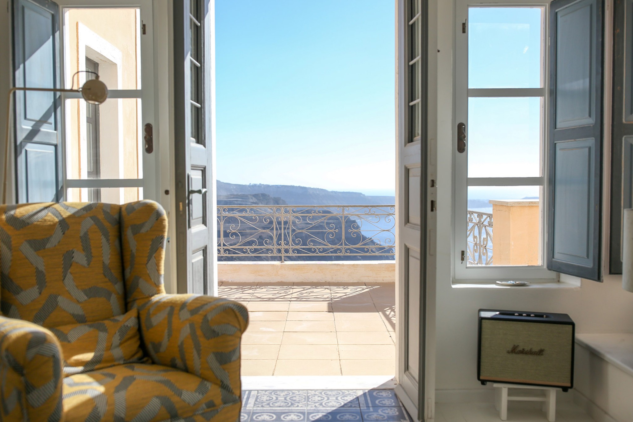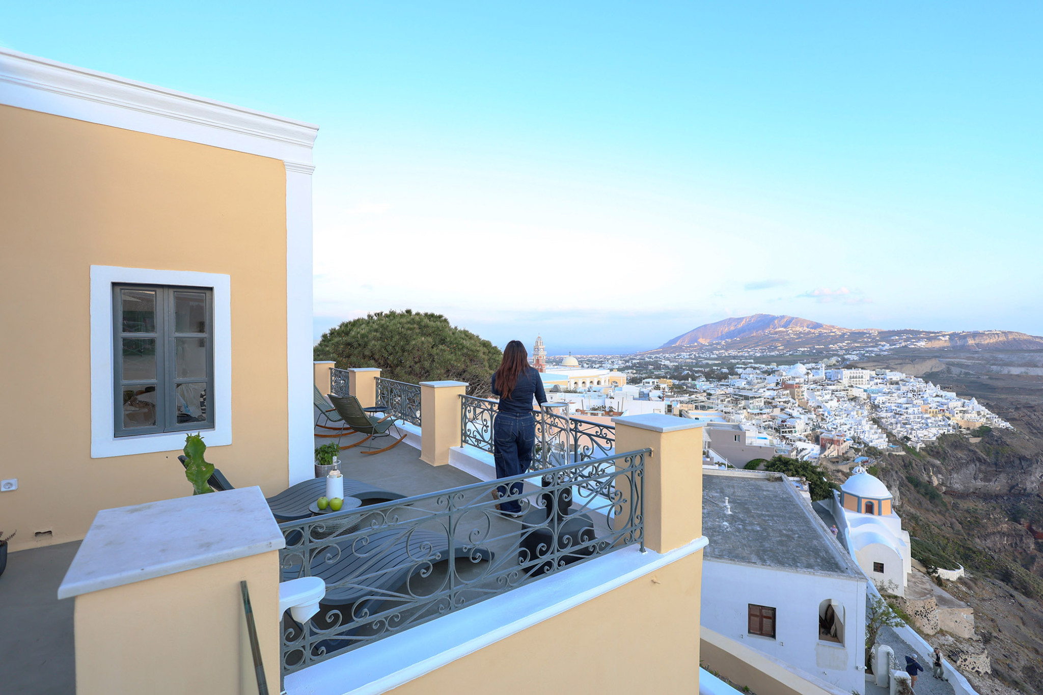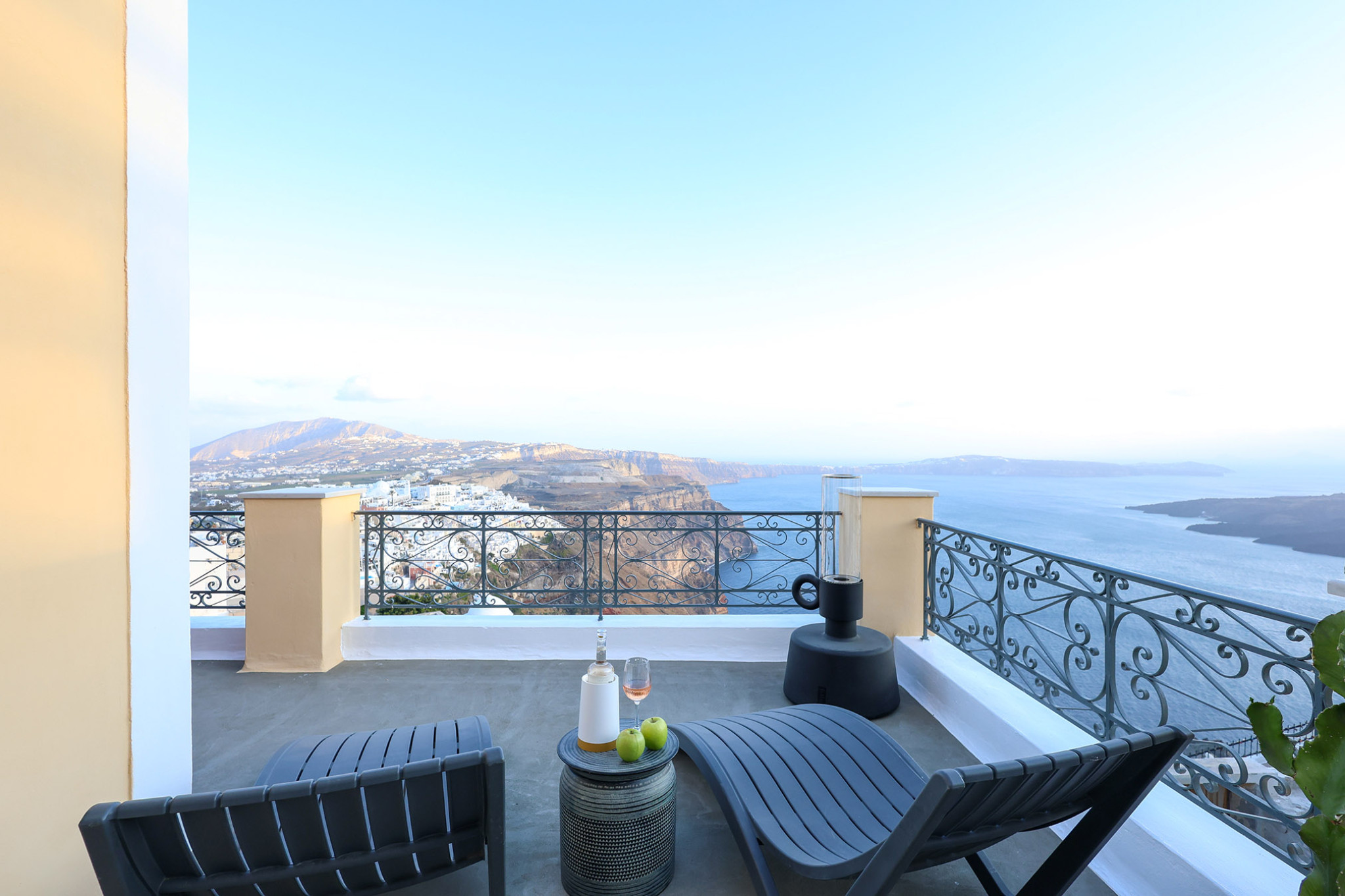 D’ Aniel Mansion envelops you with panoramic breathtaking views of Santorini’s most iconic places. Perched above the Caldera, the mansion offers stunning vistas of the volcano, the old port, and the Aegean Sea. Whether relaxing in the indoor lounge or the outdoor spacious veranda, guests are constantly surrounded by light, sea, sky, and history.