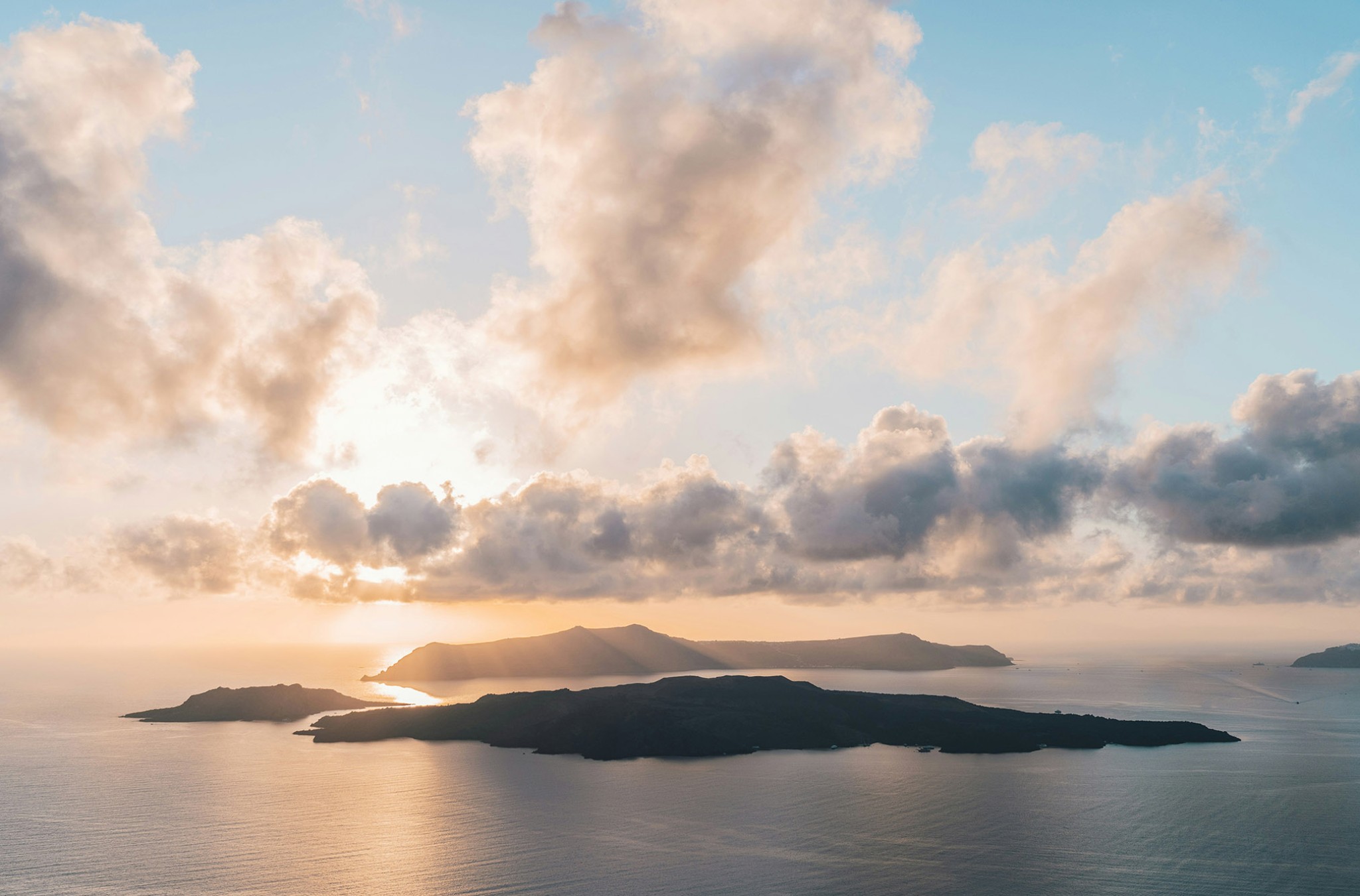 Santorini rises from the Aegean like a dream. Whitewashed houses cascade down black cliffs, blue domes mirror the sky, and narrow paths wind through villages suspended between earth and sea. Formed by the dramatic force of volcanic eruptions, Santorini carries the wild beauty of creation itself.
