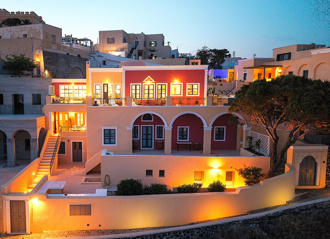 D’ Aniel Mansion is a timeless retreat where tradition and modern elegance coexist in perfect balance, creating a harmonious space of quiet sophistication. The building follows the architectural style of Santorini’s historical mansions, with grand arches and warm ochre tones, distinguishing it from the island’s typical whitewashed style residences.